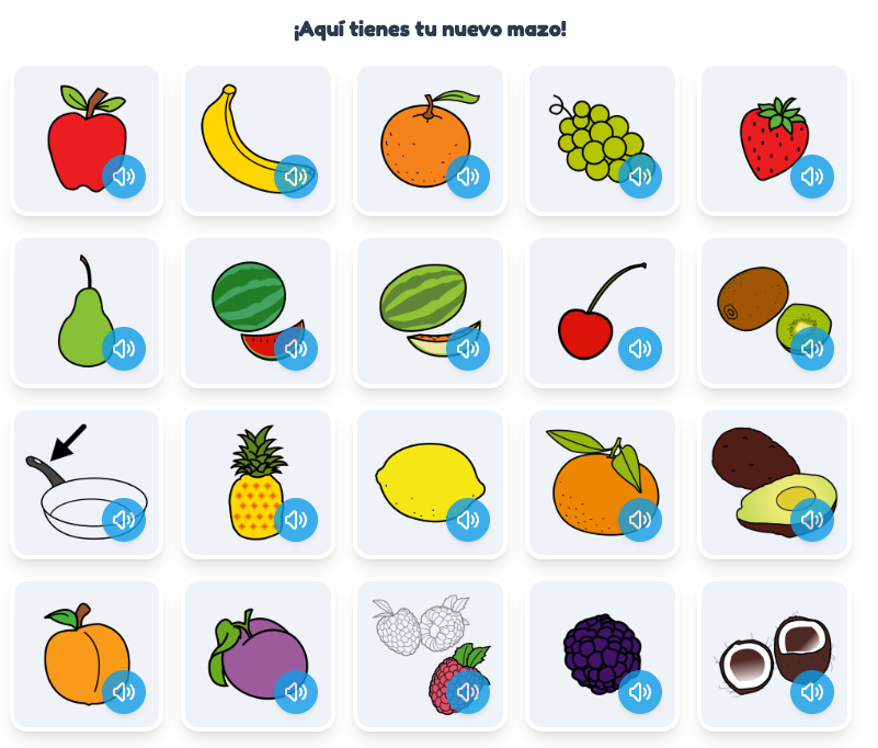 Esta aplicación es una herramienta de aprendizaje multisensorial que utiliza tarjetas virtuales para enseñar vocabulario sobre temas específicos. Al seleccionar una categoría (como animales, instrumentos o transportes), se despliega un conjunto de cartas. Cada carta combina tres elementos clave para reforzar el aprendizaje: una imagen representativa, el texto con su nombre escrito y un sonido asociado, que puede ser la pronunciación de la palabra o un efecto de sonido característico (por ejemplo, el mugido de una vaca). Este enfoque integral es ideal para la estimulación temprana, el desarrollo del lenguaje y el aprendizaje de nuevo vocabulario de una forma interactiva y muy eficaz.