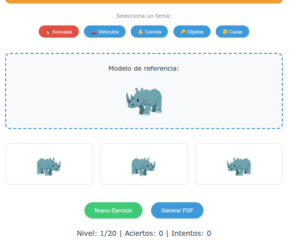Este juego se centra en la habilidad de reconocer formas y siluetas, una parte clave de la percepción visual. El objetivo es simple pero desafiante: se presenta una imagen a color y el jugador debe identificar cuál de las varias sombras que se ofrecen como opción corresponde exactamente a esa imagen. Para tener éxito, es necesario fijarse en los contornos, las proporciones y los detalles característicos de la figura, ignorando el color y la textura. Es un ejercicio fantástico para desarrollar la discriminación de formas y la agudeza visual en niños y adultos.